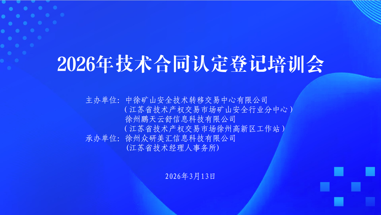 为进一步规范铜山区及徐州高新区技术合同登记流程,全面提升技术合同认定登记工作质效,3月13日上午,由江苏省技术产权交易市场矿山安全行业分中心、徐州高新区工作站联合主办,徐州众研美汇信息科技有限公司承办的2026年技术合同认定登记培训会顺利举办。园区内各企业代表、技术转移机构从业者及技术经理人等近20人参加本次培训交流活动。
